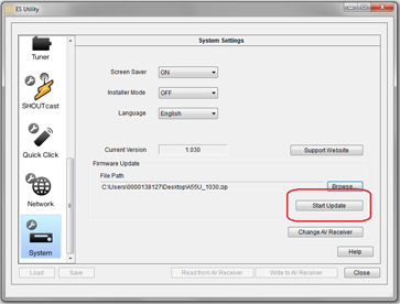 [Browse] をクリックして、サポートページからダウンロードした本体ソフトウェアを選択します。