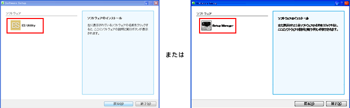 ・ES Utilityアイコン またはSetup Managerアイコン をクリックする。