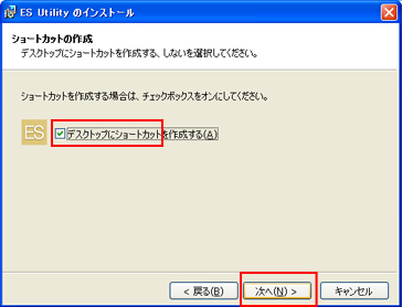 ・「デスクトップにショートカットを作成する」にチェックを入れ、 [次へ] をクリックする。