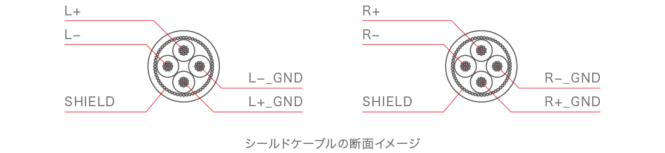 デジタル基板からボリューム、ボリュームからアナログ基板への線材に無酸素銅シールドケーブルを採用。抵抗値の低い無酸素銅シールドケーブルをL/R独立して採用することにより、外部からのノイズを防ぎロスの無い信号伝達を実現し、チャンネルセパレーションを向上させています。