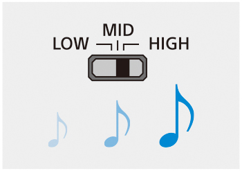 レコードのオーディオレベルやお好みに応じて、出力する音量をLOW・MID・HIGHの三段階で調整できます。