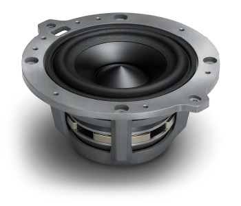 トゥイーターの振動板は表面にチタンをスパッタリングコーティングすることで、ソフト材でありながら強度を上げることに成功しています。ソフトドームの滑らかさとハードドームの高域特性の両立を図ることで100kHzまでの広帯域を実現しています。バランスドライブ型のトゥイーターは、振動板の重量・空気負荷が均一になる振動板の重心を駆動することで駆動力を余すことなく振動板に伝えることができます。さらに、高剛性・高音速の接着剤と進化した少量塗布技術により、ドームと振動板外周部の境界の非常に小さいピンポイントのスペースを駆動する構造が可能となり、リニアなピストンモーションを実現しています。
