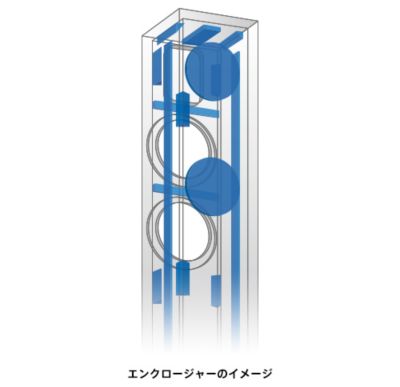 ユニットが発生する背圧に負けることのない強いキャビネットを実現するために、十分な厚みを持つMDF材を使用することで経年変化でも形状を維持し、温度や湿度の変化にも耐える音質を維持します。また、エンクロージャーの響きをコントロールし不要なノイズを排除することは、広いサウンドステージと緻密な音像定位、高品位なボーカル帯域の再生を実現するうえで重要な要素です。SS-CS3M2では、エンクロージャーの響きをコントロールするためにユニットの背圧やエンクロージャー内部で発生する定在波を抑制する「吸音」と、エンクロージャーそのものの振動を抑制する「制振」の2つに分類し、それぞれアプローチを変えて対策を施しました。吸音材の材料の種類や位置、また補強の入れ方を、何度も試作と試聴を繰り返す事で最適に調整しています。これにより不要な振動を効果的に抑え、立ち上がりのよいクリアでタイトなベースサウンドを実現しました。前面に配置されたバスレフダクトは、不要なノイズを抑え、低域の再生能力を向上させます。