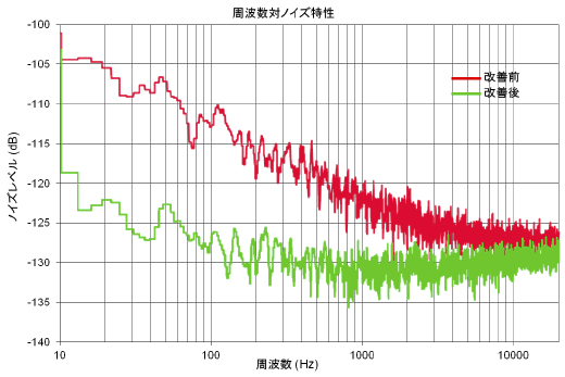 音量調節回路(ボリウム回路)が発生するノイズを特に低域で約1/30に改善。