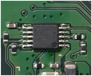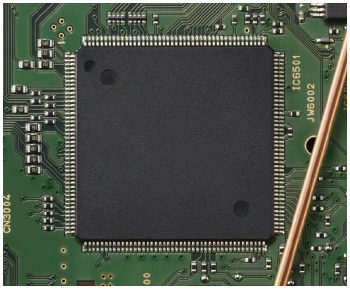 「CXD90035」では、ICのシリコンチップと外部をつなぐボンディングワイヤに金線を採用しました。柔らかい金を採用することで外部の振動がチップ内部に伝わりにくく、また導電率が高いため電気的性能も高く維持できます。