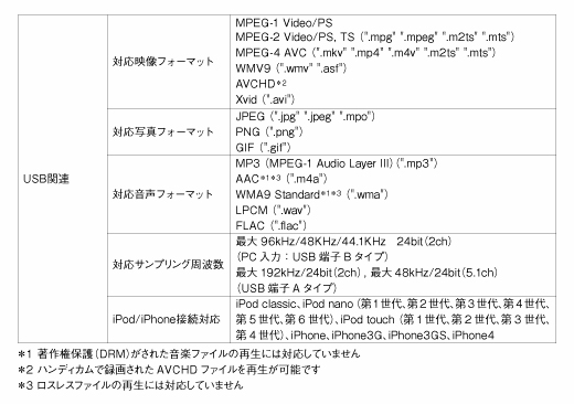 このほか、“x.v.Color”(*2)、“Deep Color”(*3)、フルHD・1080pの高精細デジタル映像信号や「ブラビアリンク」(*4)にも対応しています。