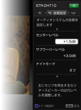 | センターレベル | -20dB〜+10dB | 0.5dB | 0dB | 主にセリフを再生するセンタースピーカーの出力レベルを調整します。 |