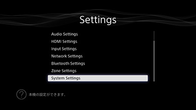- ネットワーク(LAN)ケーブル(別売)を使って本機をインターネットに接続し、ネットワーク経由でアップデートを行います。具体的なネットワーク設定方法はSTR-DN1050 / STR-DN850 ヘルプガイド の「ネットワーク機能を使う」の項目から「有線LAN接続の設定をする」「無線LAN接続の設定をする」をご覧ください。なお、すでに本機をインターネットに接続済みで、テレビ画面上に表示される「System Settings」のSoftware Update Notificationが「On」に設定されている場合、自動でアップデートの確認画面が表示されますので、「閉じる」を選んで、以下の手順[4]からアップデートを行ってください。