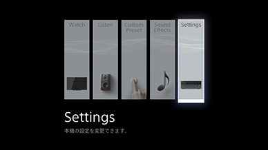 を押して電源を入れ、 リモコンの「アンプ」ボタンを押した後、「ホーム」ボタンを押して、テレビ画面上にホームメニューが表示されるまでお待ちください。