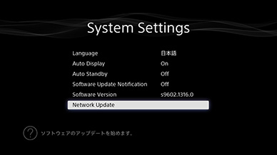 「↑/↓」を押して、「Network Update」を選び