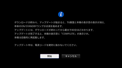 - アップデートが完了するまでは、電源コードを抜かないでください。本機の故障の原因となります。