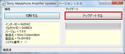 - 「接続する」をクリックすると、下記画面が表示され、現在のソフトウェアバージョン(赤枠)を確認することができます。