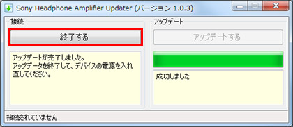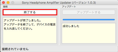- アップデートを完了すると、下記画面が表示されますので、赤枠の「終了する」をクリックしてください。