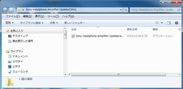 コンピューターのデスクトップに「Sony Headphone Amplifier Updater(Win)_v1.0.3」フォルダが開いた状態で表示されます。