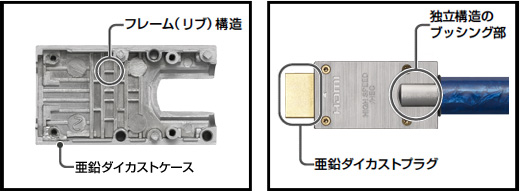 ●プラグへの微振動伝搬を抑える亜鉛ダイカストケース