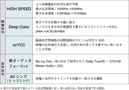 映像/音声信号に加えて100Mbpsのデータ通信が1本のHDMIケーブルで伝送できます。これにより、テレビなど1台のHDMIイーサネットチャンネル対応の機器がネットワーク接続をされていれば、その他のHDMIイーサネットチャンネル対応のブルーレイディスクレコーダーなどからもネットワーク利用が可能になります。