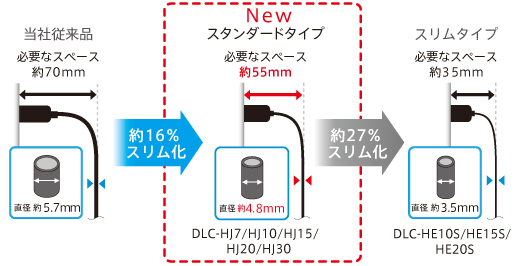 当社従来品に比べ、ケーブルの太さを約16%スリム化を実現。