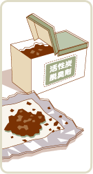 5)脱臭剤から取り出した活性炭をうすくのせます。