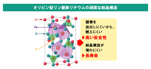 ・オリビン型リン酸鉄リチウムを正極材料に用いることで、長寿命(*)、高い安全性を実現