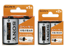 ●充電式ニッケル水素電池の単3形をこのスペーサーに入れるだけで単1形、単2形電池として使えます