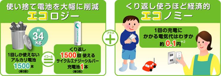 使い捨て電池を大幅に削減エコロジー+くり返し使うほどエコノミー