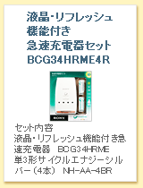 サイクルエナジーシルバー(単3形付属) コンパクト充電器セット BCG34HS2R スタンダード充電器セット BCG34HLE4R リフレッシュ機能付き急速充電器セット BCG34HRE4R 液晶・リフレッシュ機能付き 急速充電器セット BCG34HRME4R
