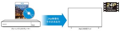 映画のオリジナルフィルムと同じように毎秒24コマのプログレッシブハイビジョン映像(24p)を収録したBDソフトに対応。24p入力に対応したハイビジョンテレビ ブラビアとHDMIケーブル(別売)で接続すれば、24p映像をそのまま出力するので、映画本来の質感で楽しめます。