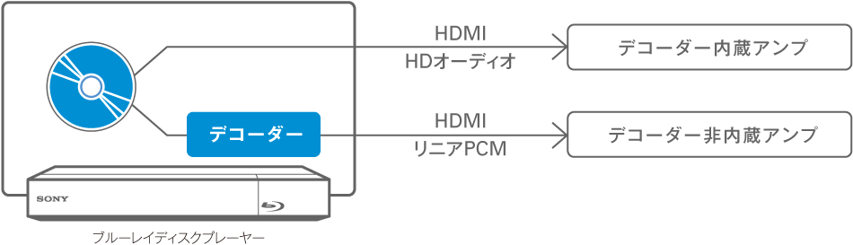 BDソフトに収録されている高音質フォーマットのドルビーTrue HD、およびDTS 2.0+Digital Outのデコードに対応。HDオーディオデコード非対応のアンプやシアタースタンドシステムなどに接続しても高精細なサラウンドを楽しめます(*)。