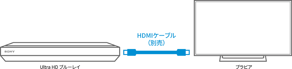 HDMIケーブル(別売)1本だけのシンプル接続で、Ultra HD ブルーレイの高画音質が楽しめます。また、プレーヤーのリモコンの再生ボタンを押すだけで、HDMI機器制御対応のブラビアの電源もONになり、テレビの入力が自動的に切り替わるなど、操作もシンプルになります。