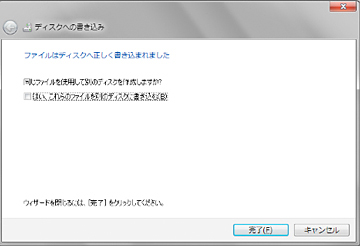 ディスクへの書き込みが終わると下記のような画面が表示されます。