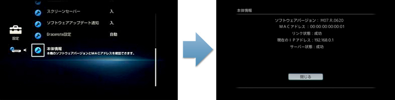 [3]「本体情報」を選択すると、ソフトウェアのバージョンが確認できます。