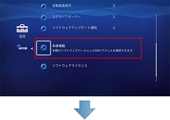 [3] 「本体情報」を選択すると、ソフトウェアのバージョンが確認できます。