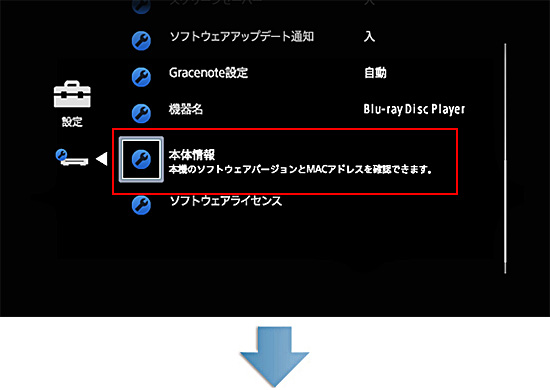 [3] 「本体情報」を選択すると、ソフトウェアのバージョンが確認できます。