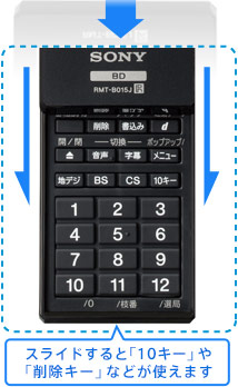 しかもコンパクトで持ちやすいから、らくらく操作できます。「10キー」で選局したいときなどは、下部をスライドさせるとフルリモコンに早変わりします。