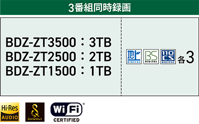 ソニーのブルーレイディスクレコーダー BDZ-ZT3500 / BDZ-ZT2500 / BDZ-ZT1500 / BDZ-ZW1500 / BDZ-ZW550 |