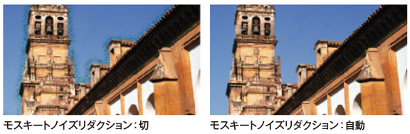 映像の前後の変化を比較して、ザラザラ、ザワザワしたランダムノイズ成分を低減。SD映像をアップコンバートした番組などに有効です。