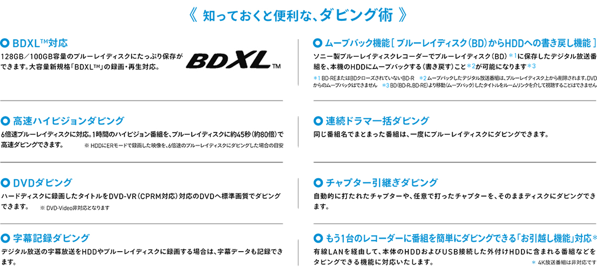 ※ その他モデルの注意点など、詳しくはソニーブルーレイディスクレコーダーサポートページをご覧ください