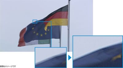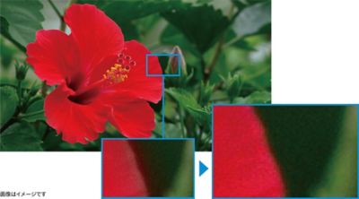 データ圧縮時に失われた色信号を従来より解析範囲を広げ、より精度の高い色補完を実現。滑らかかつ、キレのある色を再現します。