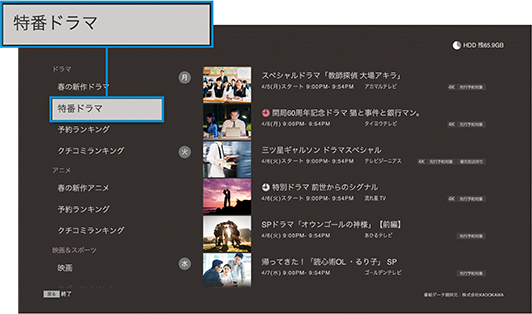 「ドラマを最終話まで手間なく録画したい・・・」そんな時に便利です。番組名を一度設定すれば、以降、その番組の放送日時を自動で検索して、最終話まで録画(*)します。毎週録画予約する手間も省けるので、お目当てのドラマ・アニメを録り逃しません。