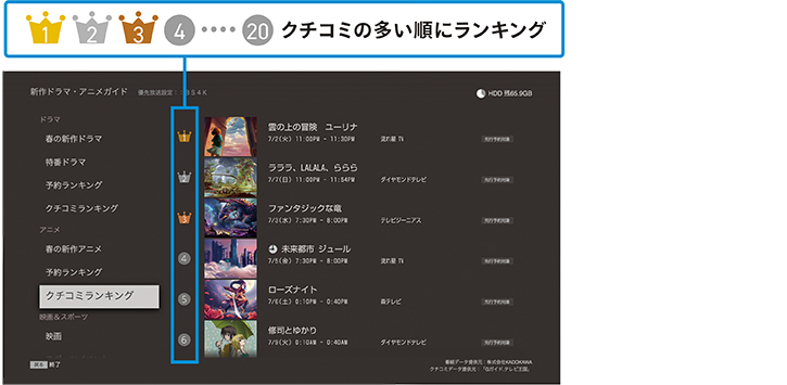 ※ クチコミランキングは、4K放送に非対応です