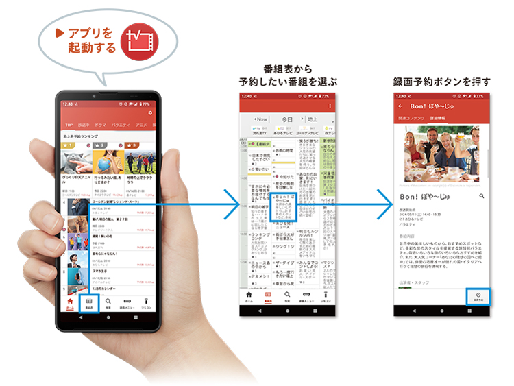 「Video & TV SideView」アプリが、BS4K/CS4K放送の番組表に対応。外出先からスマートフォンで、4K放送の録画予約ができます。