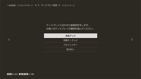 接続したディスプレイの種類ごとに、簡単に画質設定ができます。またレコーダーを購入後、ハイビジョンテレビから4Kテレビに買替えた場合も、レコーダーがディスプレイ設定の変更を自動で通知してくれるため、簡単に変更できます。