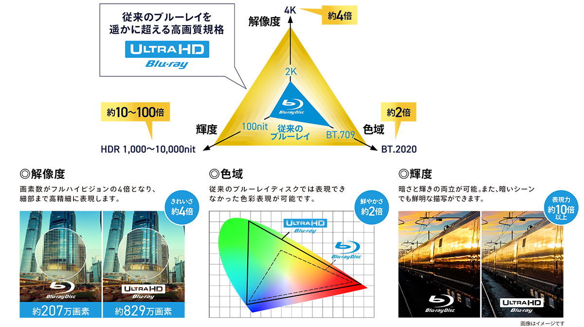 解像度・色域・輝度が、従来のブルーレイを大きく超えたUltra HD ブルーレイ。まるで実物が目の前にあり、実際に風景が広がっているようなリアルな視覚体験