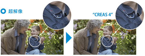 データ圧縮時に失われた色信号を従来より解析範囲を広げ、より精度の高い色補完を実現。滑らかかつ、キレのある色を再現します。