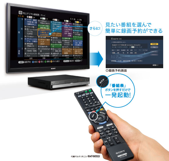 地上・BS・110度CSデジタル放送に対応。新聞のテレビ欄を見るように番組を探して録画予約できます。