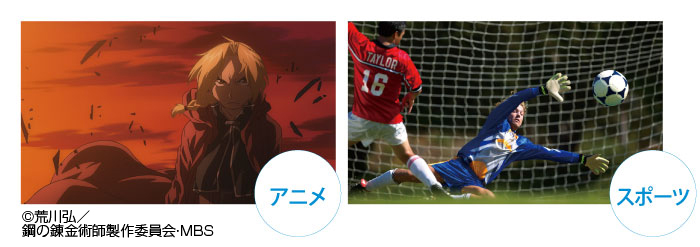 アニメ、スポーツ、映画など電子番組表の番組ジャンル情報に応じてそれぞれの番組に最適な画質設定で録画します。