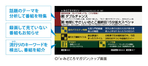 話題のテーマや流行しているキーワードなどを自動で分析し、世間で話題の番組を「マガジン」形式で毎日紹介。見たい番組は「マガジン」から簡単に録画予約できます(*)。