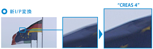 インタレースからプログレッシブへの変換の際、横方向に現れるシマ模様を低減。斜め線のギザギザを補正してスムーズなラインにします。