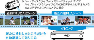 USBケーブル(別売)*1*2やi.LINKケーブル(別売)*3、または8cmDVD(別売)で、映像や写真をハイビジョン画質のままブルーレイディスクレコーダーのハードディスクに取りこめます*4。もちろん、1920記録対応モデル(HDR-XR500V/XR520V/XR100/CX120/CX12)で撮影した、1920×1080画素のフルハイビジョン画像にも対応しています。