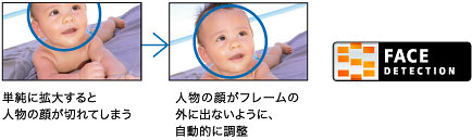 写真に写っている人物の顔位置を検出。エフェクトをかけたときに画面上で顔が切れないように自動調整します。